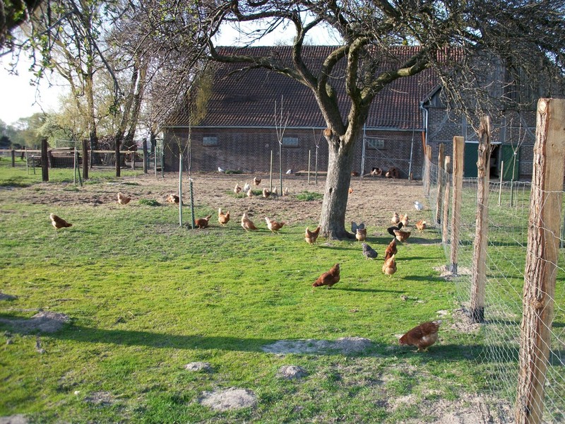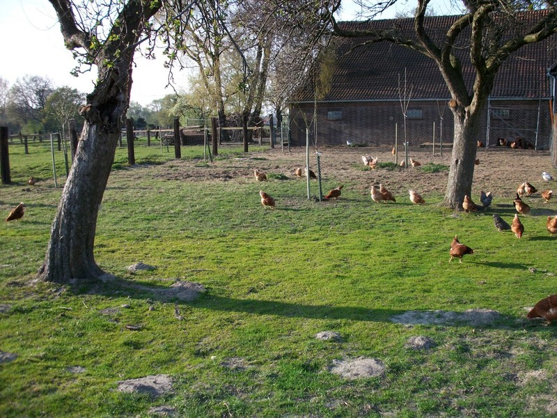 Die Tiere ernähren sich überwiegend von der Wiese und bekommen zusätzlich im Stall Eiervollkorn zugefüttert. Im Stall befinden sich die Legenester, aus denen jeden Tag die frischen Eier gesammelt werden.